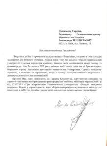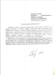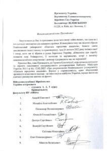 Такий заклик від імені колективу 160 здобувачів-військових Університету виклала студентка факультету судового та міжнародного права. До звернення долучено листи майже сотні воїнів із вимогою до Президента України сприяти скасуванню розпорядження Кабміну «Про реорганізацію Національного університету «Одеська юридична академія».
