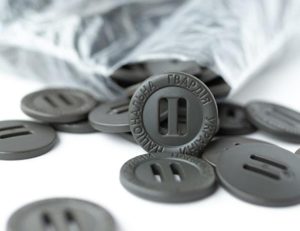 великі декоративні гудзики з гравіюванням або логотипом бренду;